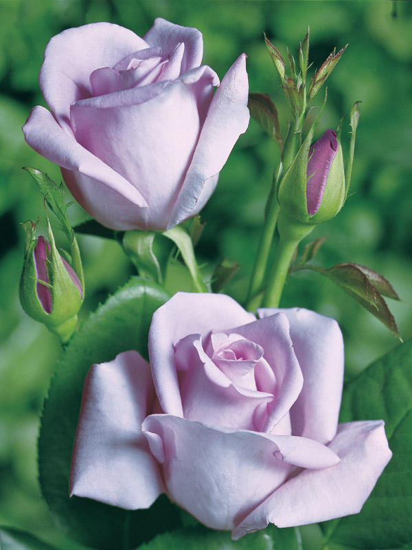 Цветки крупные, махровые, серебристо-сиреневые или сиренево-пурпурные, медленно раскрываются из крупных, элегантных бутонов. На солнце цвет кажется более голубым, в тени – более розовым. Куст прямостоячий, сильнорослый, густой. Листья ярко-зеленые, кожистые. Роза прекрасно смотрится при выращивании в больших массивах. Достаточно зимостойкий сорт.