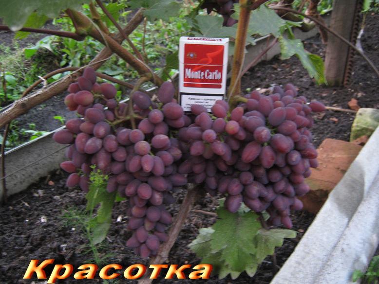 Виноград Красотка имеет отличный товарный вид. Гибридная форма Красотка отличается прежде всего своим декоративным видом гроздей с красивыми ягодами с привкусом легкого муската, а также хорошими товарными качествами. "