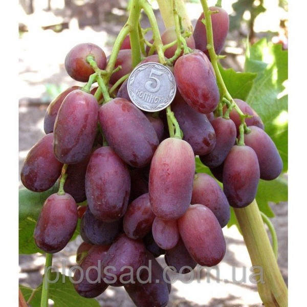Ранний сорт. Гроздь коническая, среднеплотная, 600-1500г. Ягоды 8-12г, красные. Зимостойкость - 23°С