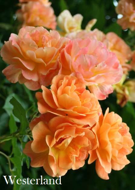 Неплотномахровые, крупные, душистые цветки собраны в соцветия. Окраска их меняется в течение цветения от оранжево-желтой до лососево-абрикосовой, отцветая, они становятся розоватыми. Кусты с крупными нарядными листьями, высотой до 1,5-1,7 м сильно разрастаются в ширину, поэтому хороши и в одиночных посадках. Роза зацветает рано, и цветение длится до поздней осени.