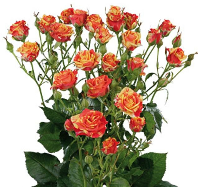 Куст высотой 60-70см и шириной 40см. Диаметр цветка 5-6см. Лепестки пестрые, красно-желтые."