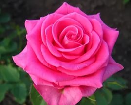 Ярко-розовый цветок с сиреневой окантовкой. Густомахровый (до 60 лепестков). Диаметр 10-12см. Куст высотой 100-120см. Тонкий аромат."