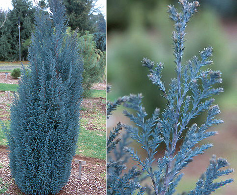 Хвоя игольчатая, очень мелкая, серебристо-голубая. Чешуйчатая плотно прилегающая к ветвям, голубовато-сизо-стального цвета с налётом.