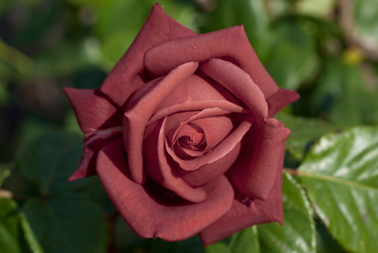 Оранжево-красные бутоны, раскрываются в крупные (12-14 см в диаметре) цветки кирпично-красного цвета, на побегах - в основном одиночные. Аромата нет. Куст прямостоячий, молодые побеги светло-зеленые с красновато-коричневым оттенком.Обильное цветение. Хорошая устойчивость к болезням.