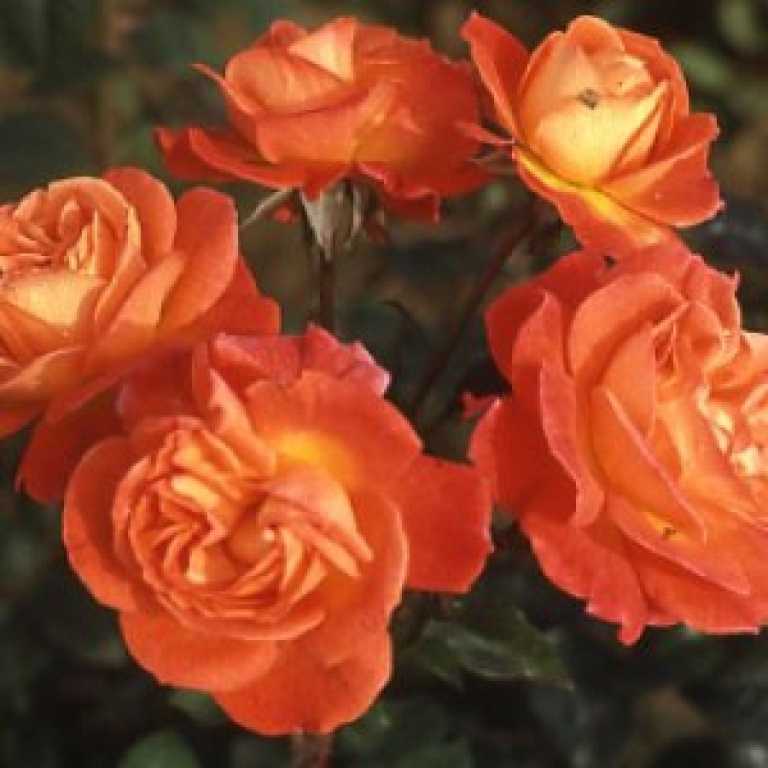 Цветки медно-оранжевого цвета, с приятным ароматом. Отличается непрерывным цветением до заморозков. Куст хорошо разветвленный. Листья зеленые. Сорт зимостойкий, устойчивый к заболеваниям.