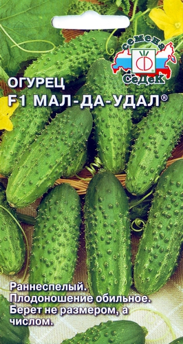 Раннеспелый (от всходов до сбора урожая 40-45 дней) партенокарпический гибрид. Растение мощное, плетистое, с женским типом цветения. Плодообразование на главном стебле – одиночное, по одной завязи в каждом узле, а на боковых побегах – букетное, по 2-3 завязи в узле. Зеленцы короткие, цилиндрические, крупнобугорчатые, зеленые, белошипые, длиной 8-10 см, плотные, хрустящие, ароматные. Ценность гибрида: устойчивость к корневым гнилям, настоящей мучнистой росе и оливковой пятнистости, выносливость к ложной мучнистой росе, высокая ранняя урожайность. Рекомендуется для употребления в свежем виде, консервирования и засола.