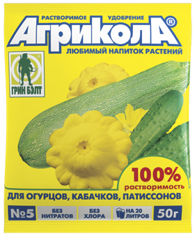 • Огурец, кабачок, цуккини, патиссон:первая подкормка проводится в фазе появления 3-го настоящего листа при высеве культуры в открытый грунт, при рассадной культуре — через 5—7 суток после высадки рассады. Последующие обработки проводите с интервалом 7—10 дней. Всего рекомендуется провести 4—5 подкормок.