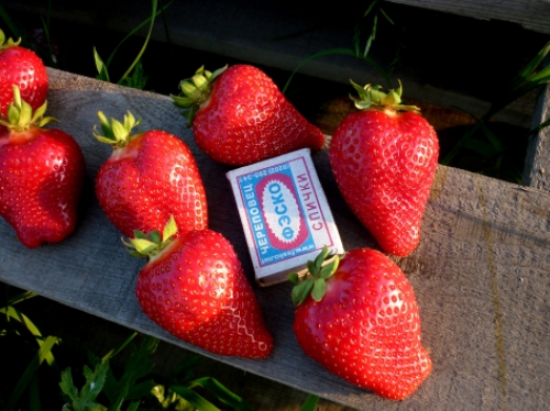Ягоды крупные (30-50 г), равномерные, имеют удлиненную коническую форму, ярко-красный цвет с блеском. Их отличает сочность, кисло-сладкий вкус и средне выраженный аромат. Преимуществом этой клубники является сохранение ей своей массы в течение всего срока плодоношения. Кроме того, благодаря плотности ягод и продолжительности их хранения, имеет высокие показатели транспортабельности, а также хорошие коммерческие характеристики - благодаря внешней привлекательности.