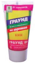 Граунд полностью уничтожает любые сорняки, включая их надземные и подземные части. Действует по зеленым растущим сорнякам. Попадая на растение, Граунд проникает в зеленые листья и стебли сорняков и разносится по всему растению, включая корневую систему. Препарат блокирует синтез веществ в клетках растения, и оно гибнет. Обработанные сорняки желтеют через 7-14 дней, а через 15-25 дней полностью отмирают