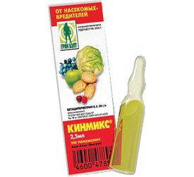 Раствором Кинмикса опрыскиваются плодовые деревья, ягодные кустарники, картофель и капуста.
